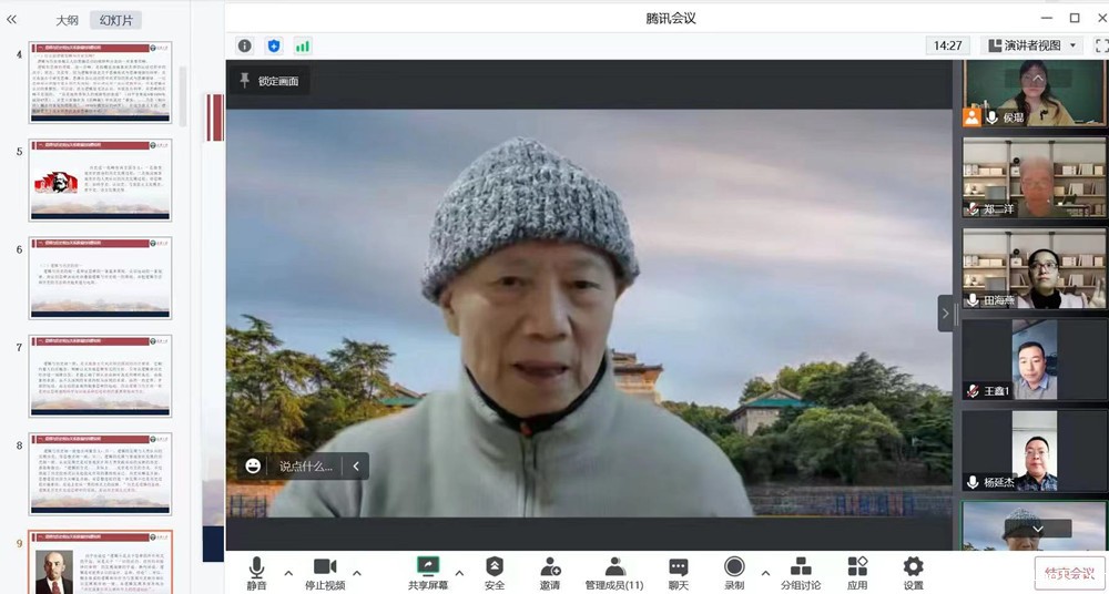 为加强博士生课程建设,提高课程育人水平,hth华体会体育在线app特邀武汉大学教授、博士生导师、河南大学特聘马克思主义理论学科带头人梅荣政为博士生讲授《习近平新时代中国特色社会主义思想专题摘编》课、《马克思主义前沿问题研究专题》课。两门课程通过腾讯会议线上方式进行,自11月22日开讲,历时六周,共计42学时。