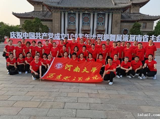 为庆祝中国共产党成立100周年,5月30日,hth华体会体育在线app在我校大礼堂前参加“中国梦·劳动美——永远跟党走”河南大学教职工健身操舞比赛。本支健美操队伍由院党委副书记吴涛领队,由教练陈华指导,采取改编第二套的乐曲。