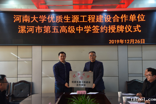 我校在漯河五高举行优质生源基地签约授牌仪式