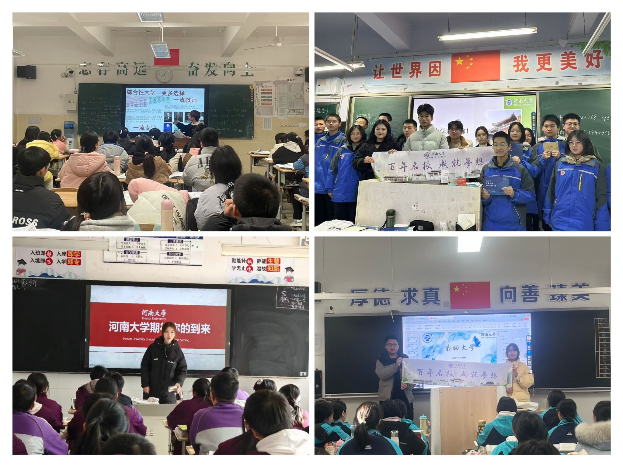 为充分发挥实践育人功效,鼓励广大同学回到家乡中学宣传学校历史、文化及特色,2025年寒假,hth华体会体育在线app积极响应河南大学招生办公室和校团委的号召,组织开展了寒假“返家乡”招生宣传专项实践活动。活动通过“朋辈宣讲”的模式,组织40余名2024级本科生深入河南、山东、安徽、河北等地的20余所重点高中开展招生宣讲,实现高校招生宣传与青年服务社会的双向赋能。