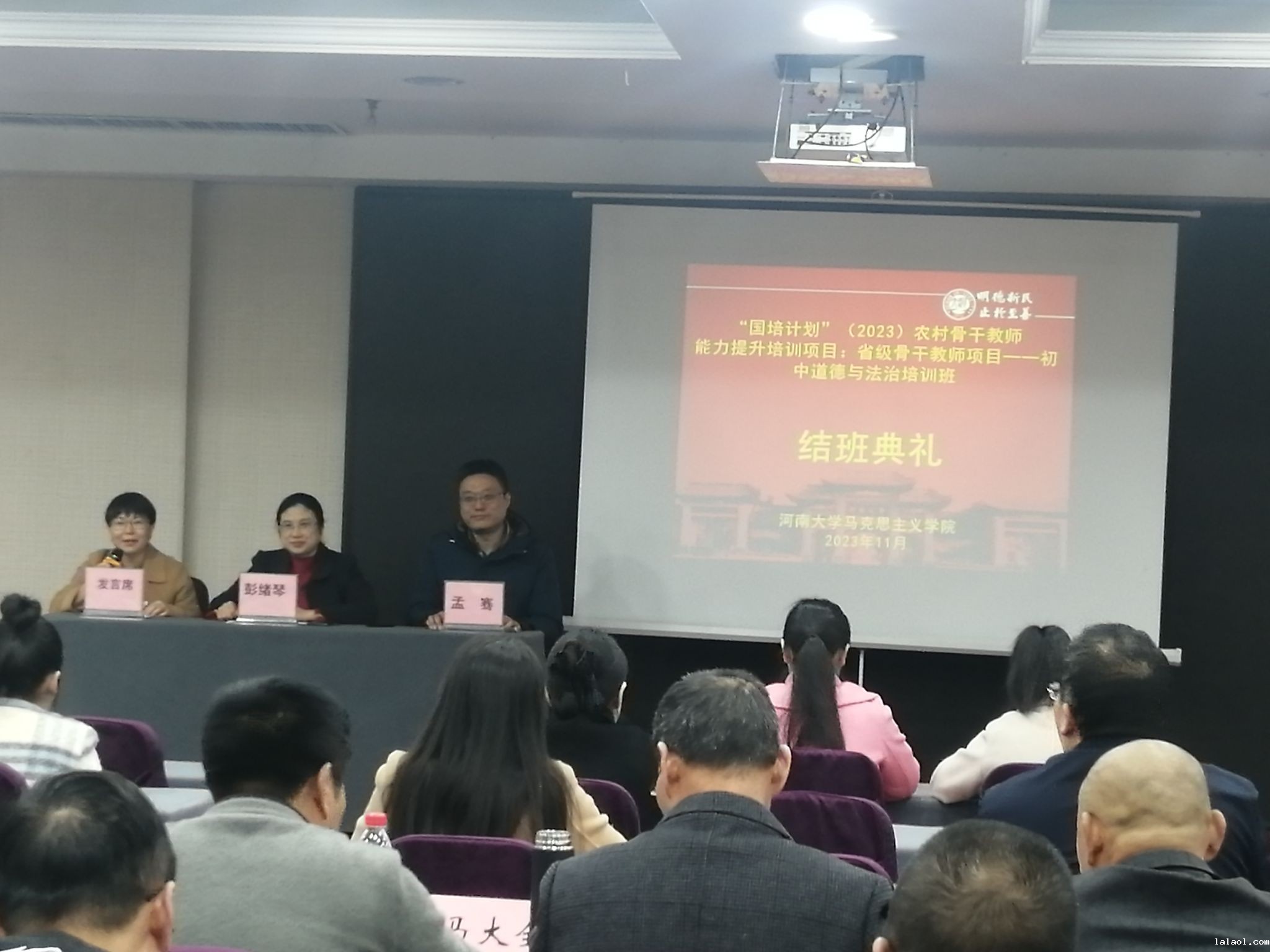 11月19日上午, “国培计划”(2023)农村骨干教师能力提升培训:省级骨干教师项目(初中道德与法治)河南大学培训班结业仪式隆重举行。hth华体会体育在线app党委书记彭绪琴、副院长孟骞出席,仪式由孟骞主持。