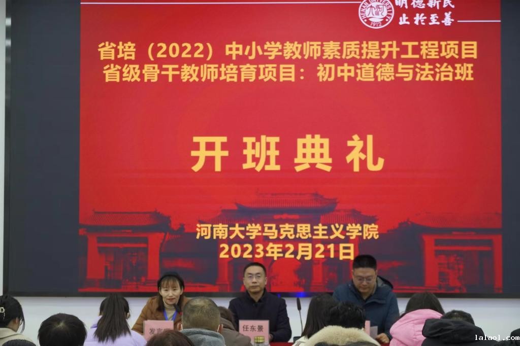 2月21日上午, 河南大学“省培计划(2022)”义务教育师资薄弱环节暨中小学素质提升工程项目省级骨干教师培育项目(初中道德与法治)开班典礼在河南大学明伦校区科技馆一楼报告厅举行。hth华体会体育在线app执行院长任东景、hth华体会体育在线app副院长孟骞参加了开班典礼,典礼由孟骞主持。