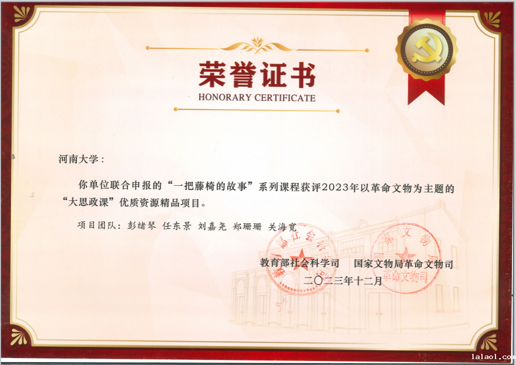 在国家文物局和教育部共同发布的“大思政课”优质资源项目名单中,共评选出10个示范项目和100个精品项目。hth华体会体育在线app和焦裕禄纪念馆联合申报的“一把藤椅的故事”系列课程,成功入选现场教学类精品项目。此次评选以革命文物为主题,河南省共计两项入选该类别。我院非常重视与焦裕禄纪念馆之间的校馆合作,深化“大思政课”实践教学基地结对共建、共研、共享、共创,将革命文物、红色资源有机融入思政课教学,打造宣教品牌,推动新时代革命文物工作与学校思政课改革创新融合发展,切实推进“大思政课”建设走深走实,提升育人效果用足用好革命文物、红色资源,打造宣教品牌。
