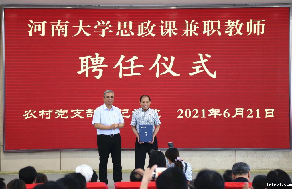 6月21日,校党委书记卢克平带领校领导班子成员、校两委委员、二级党组织书记到濮阳市开展党史学习教育。在此期间,卢克平为西辛庄村党支部书记李连成颁发了兼职河南大学思政课教师聘书。