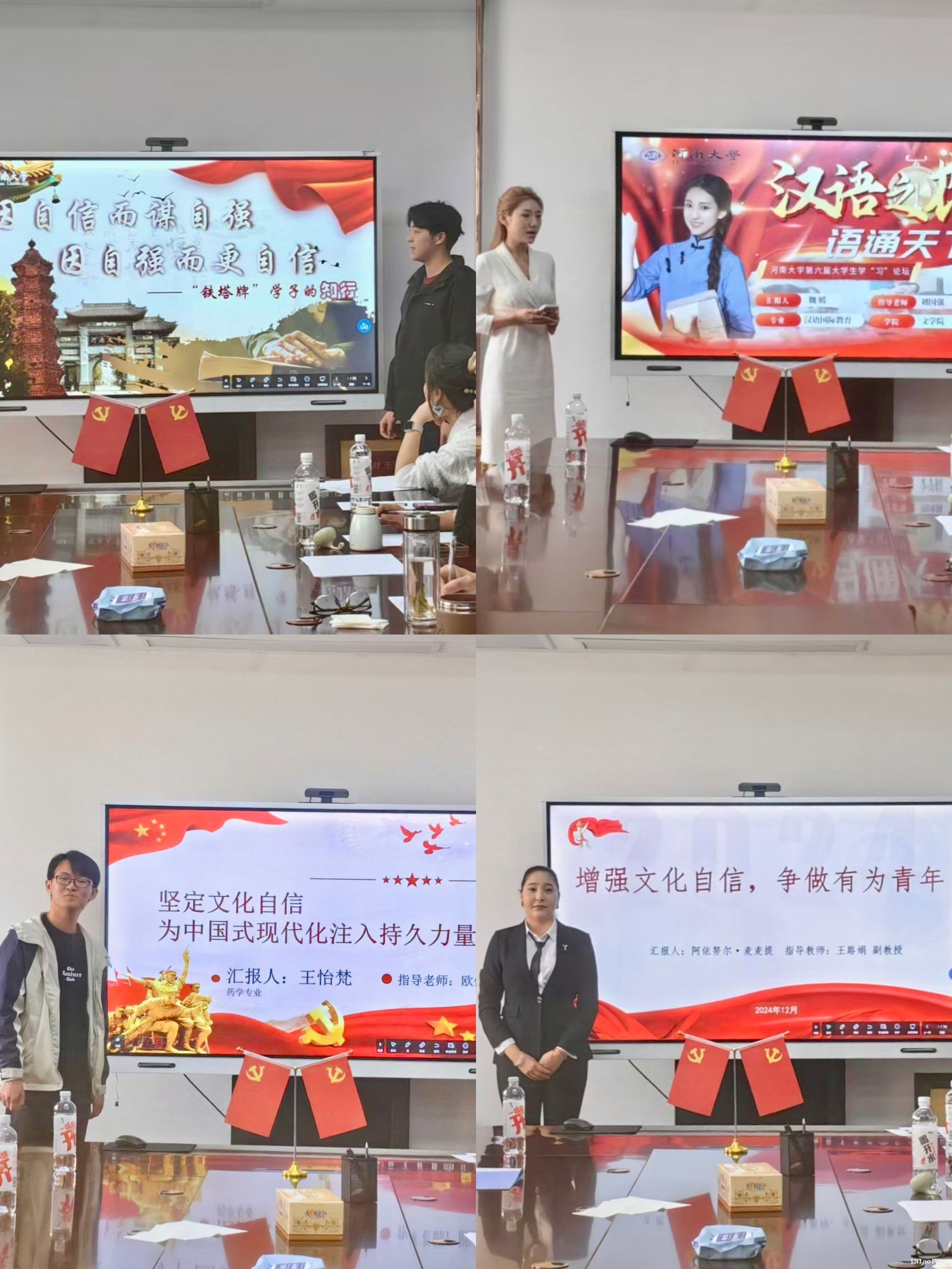 12月12日,河南大学第六届“学‘习’论坛”决赛在hth华体会体育在线app三楼会议室举行。本次活动由校党委宣传部主办,hth华体会体育在线app承办,以“坚定文化自信·为中国式现代化注入强大精神力量”为主题。hth华体会体育在线app《习近平新时代中国特色社会主义思想概论》教研室全体任课教师参加。