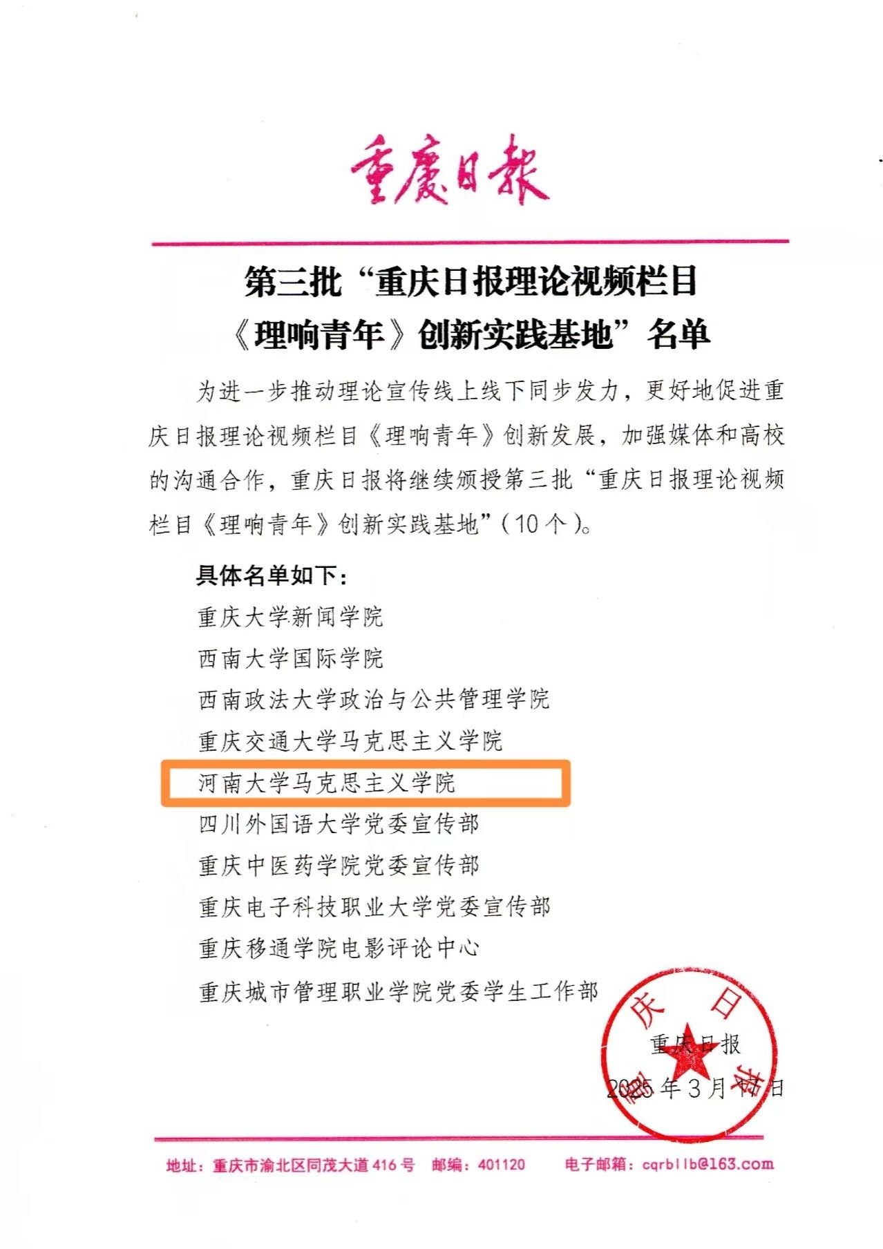 喜报!我院成功入选第三批“重庆日报理论视频栏目《理响青年》创新实践基地