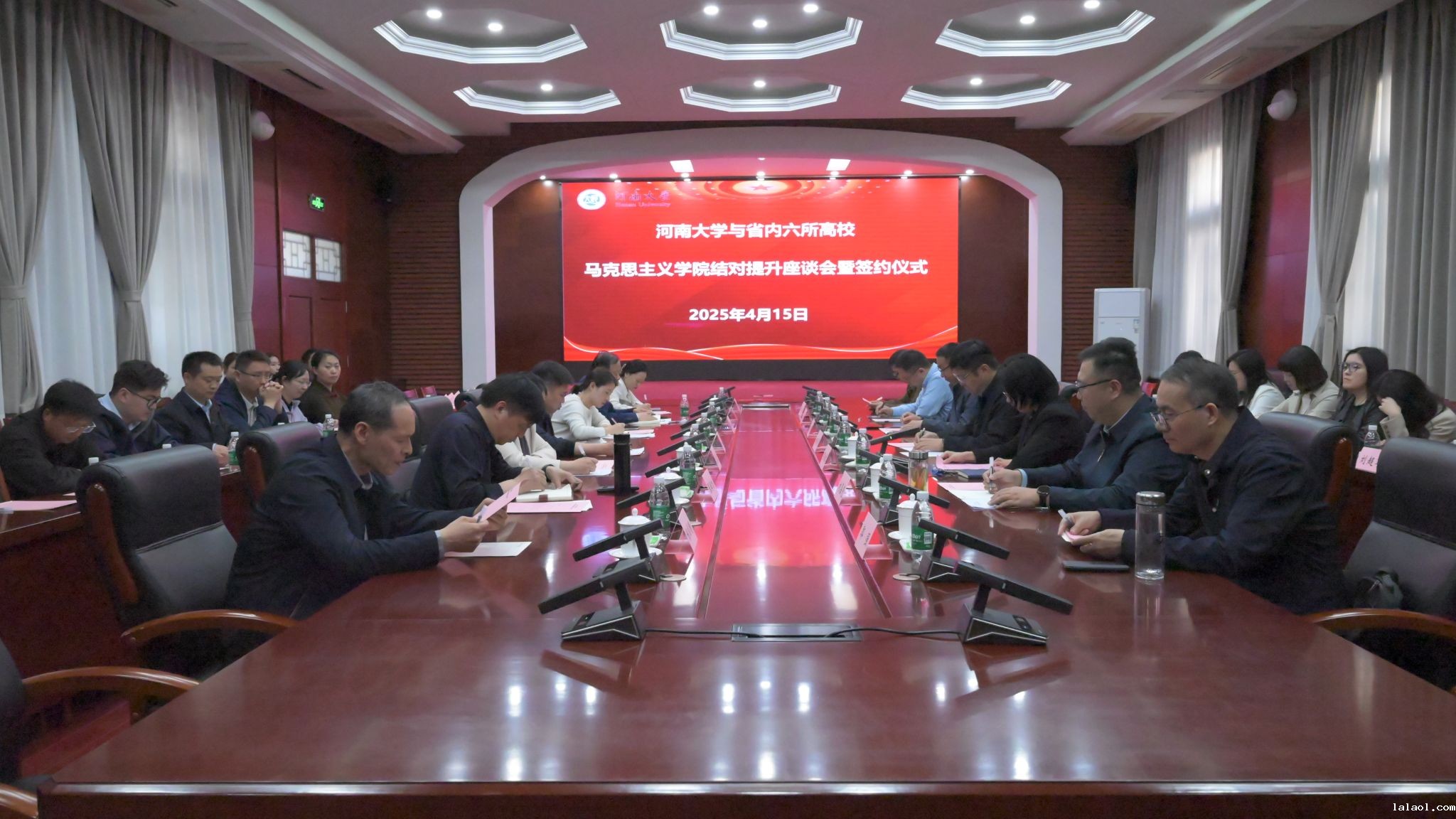 为深入贯彻落实习近平总书记关于思政课建设的重要指示批示精神,根据省委宣传部、省委教育工委、省教育厅《关于印发〈河南省高校hth华体会体育在线app结对提升工作方案〉的通知》要求,4月15日上午,我校hth华体会体育在线app与周口师范学院、河南开封科技传媒学院、开封大学、濮阳职业技术学院、开封文化艺术职业学院、兰考三农职业学院hth华体会体育在线app六所高校的hth华体会体育在线app举行结对提升座谈会暨签约仪式。我校党委副书记杨萌芽及七所结对高校的hth华体会体育在线app领导班子、教师代表共27人参加会议。会议由我校hth华体会体育在线app党委书记彭绪琴主持。