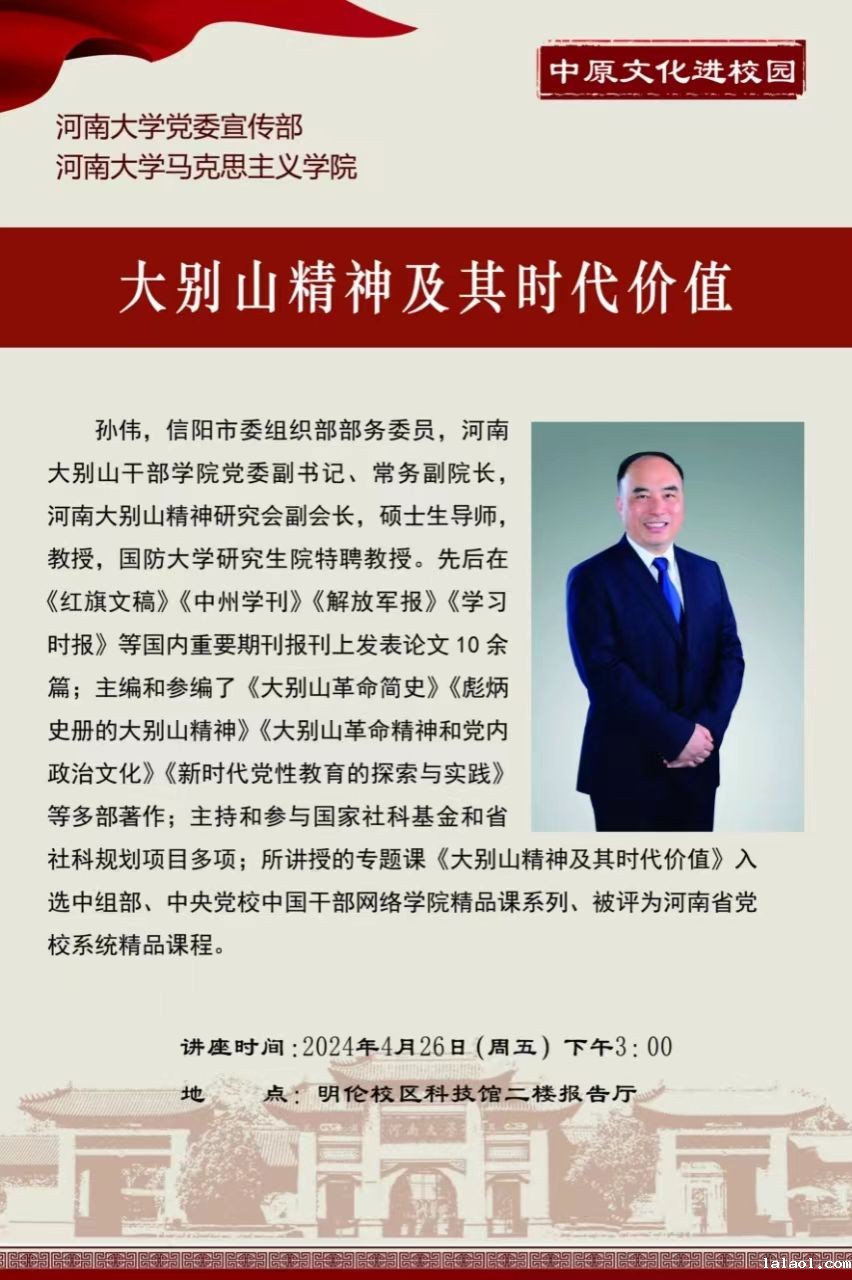 中原文化进校园讲座预告(4.26):大别山精神及其时代价值