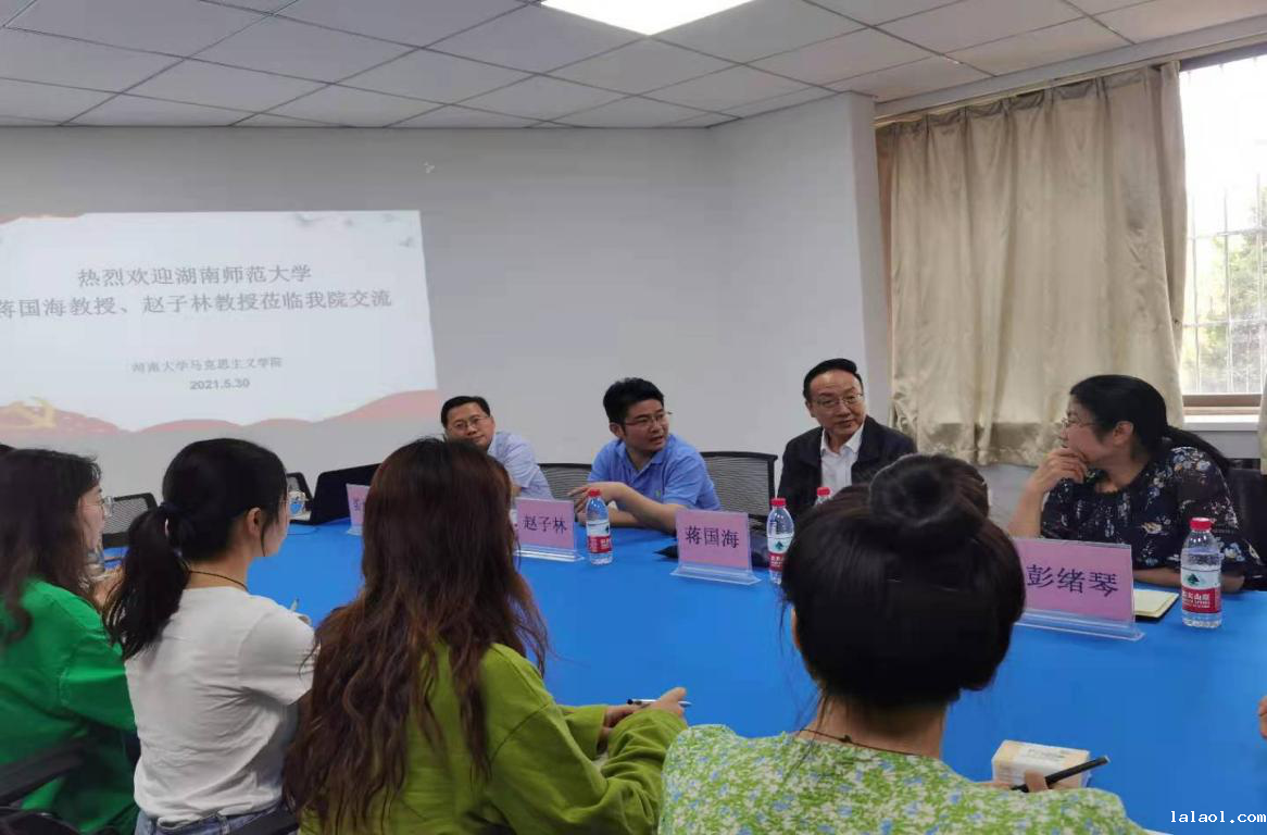 5月30日,湖南师范大学蒋国海、赵子林两位教授应hth华体会体育在线app之邀在明伦校区科技馆二楼院212室与我院师生就“马克思主义理论学科学位点建设”进行座谈。座谈会由彭绪琴副院长主持。部分教师代表和研究生代表参加。