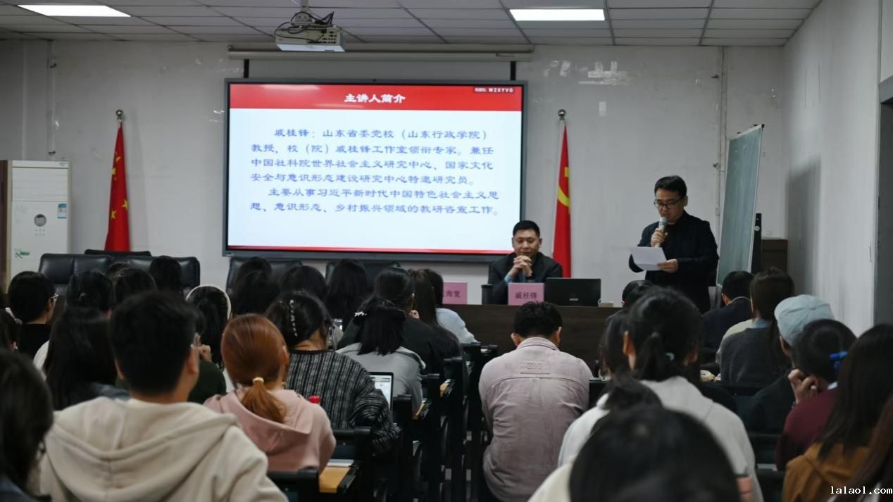 10月31日下午,中共山东省委党校戚桂锋教授作题为“习近平新时代中国特色社会主义思想开辟马克思主义中国化时代化新境界”的专题学术报告。报告会由hth华体会体育在线app副院长关海宽主持,学院师生共100余人到场聆听。