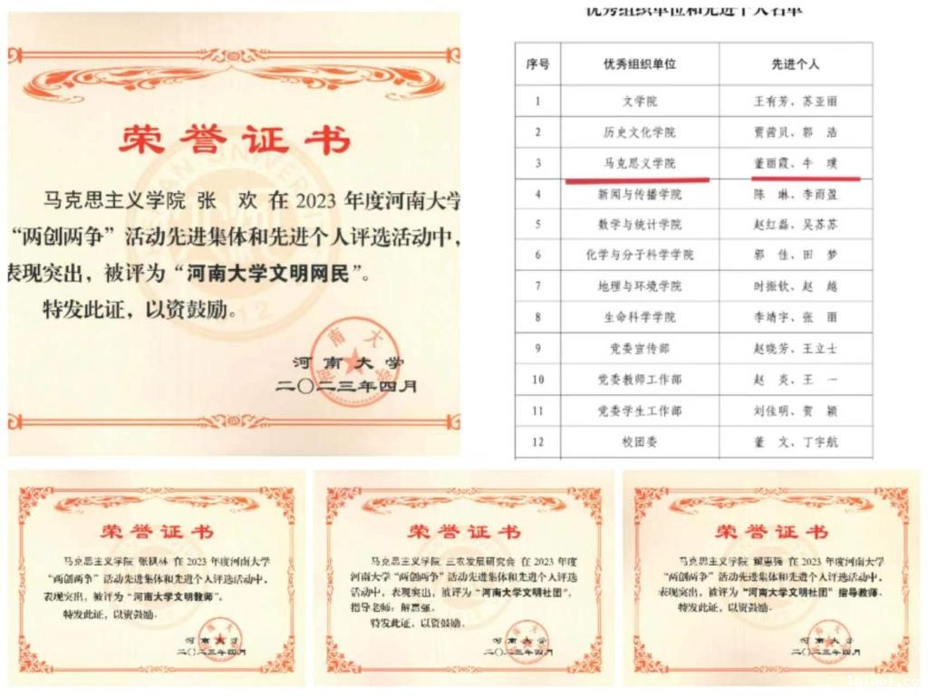 hth华体会体育在线app被评为2023年度河南大学“两创两争”活动优秀单位组织,董丽霞、牛璞被评为先进个人。