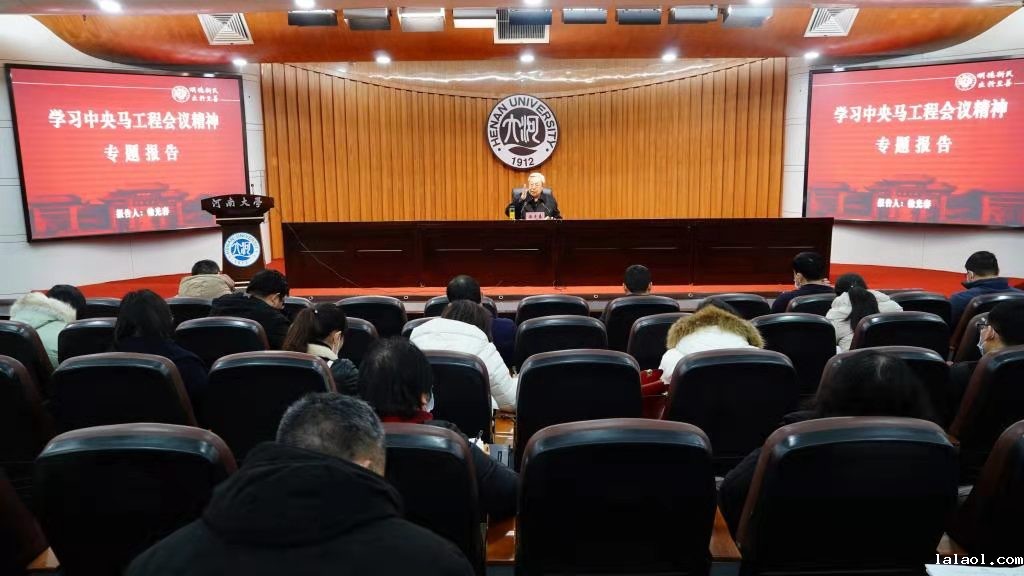 12月24日上午,中央马克思主义理论研究和建设工程咨询委员会主任、河南省委原书记、河南大学马克思主义研究院院长徐光春在河南大学金明校区行政楼249会议室作了题为“学习中央马工程会议精神”的专题报告。校党委副书记张宝明出席报告会并致辞。hth华体会体育在线app全体领导班子成员及学校师生代表聆听了报告会,会议由hth华体会体育在线app执行院长张向东主持。