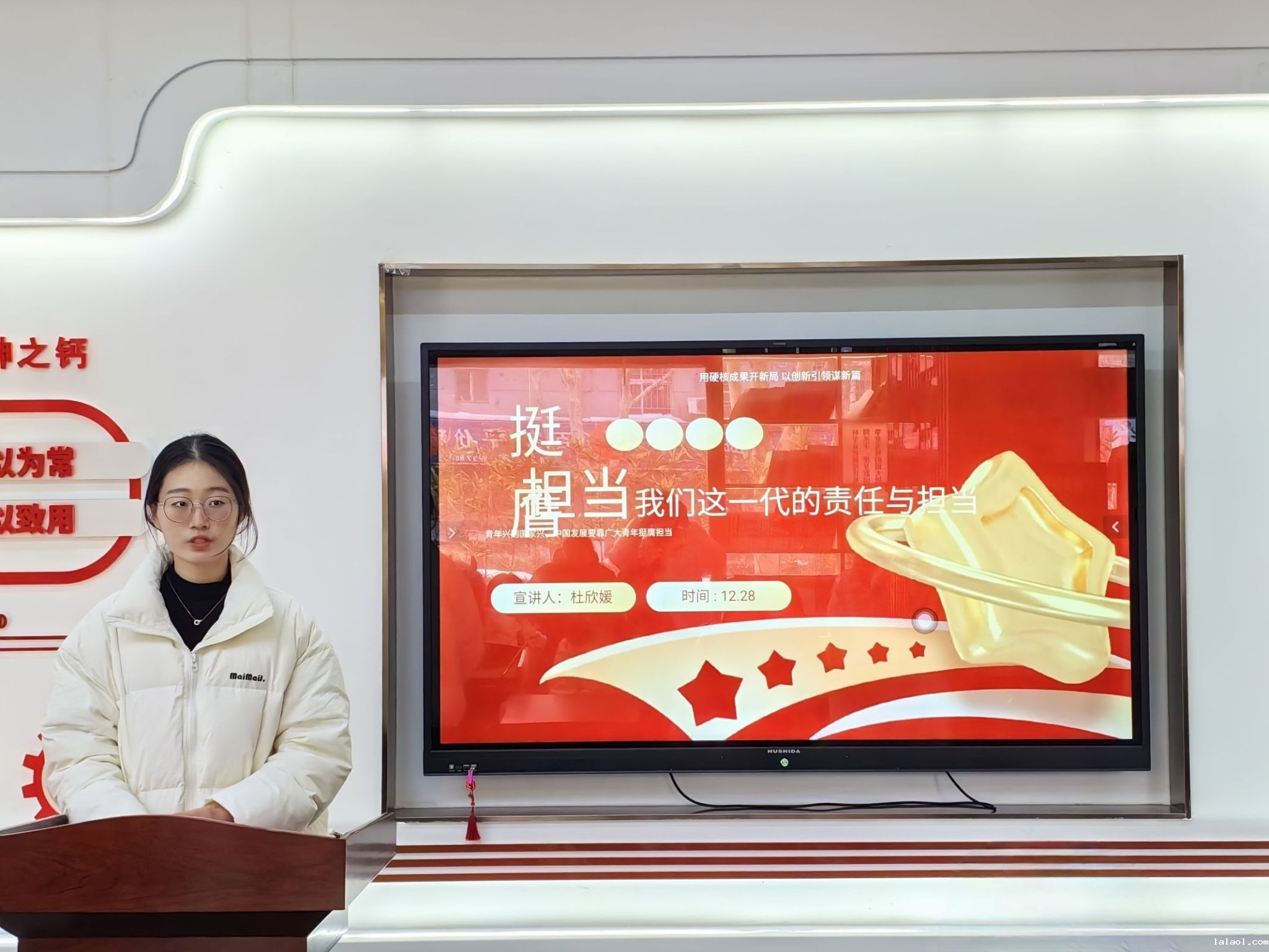 肖思为立足学科专业特色,以饱满的精神状态,从历史维度,深刻内涵,核心内容,实践要求四个方面深刻阐述了习近平经济思想产生的时代背景,科学体系,主要内容以及如何实现经济的高质量发展。杜欣媛结合党的理论成就,通过生动的事例阐述了新时代青年的责任与担当,引导广大青年要坚定不移听党话、跟党走,怀抱梦想又脚踏实地,敢做敢为又善作善成,在新时代强国复兴梦的指引下厚植理想、勇建新功。张佳慧以青春奋进为主题介绍了社会主义现代化强国建设新征程的后备力量,强调青年是国家和民族未来的希望和主力军,鼓励团员和青年应坚定信仰,在奋斗中实现自我价值,为实现中华民族伟大复兴梦贡献青春力量。