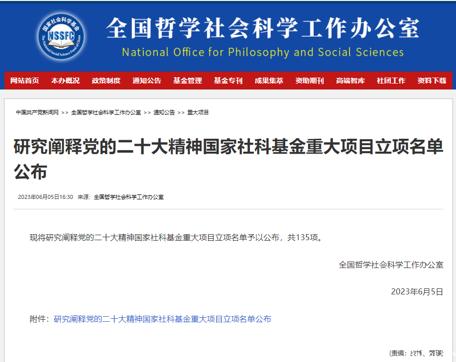 6月5日,全国哲学社会科学工作办公室公布了研究阐释党的二十大精神国家社科基金重大项目立项名单,我校hth华体会体育在线app林志友教授申报的“开辟马克思主义中国化时代化新境界的基本原则和路径方法研究”获批立项。本次重大项目共立项135项,“开辟马克思主义中国化时代化新境界的基本原则和路径方法研究”的获批充分展示了我校在哲学社会科学领域重大问题方面的研究实力和水平,对于拓宽我校马克思主义中国化时代化研究领域,提升马克思主义学科建设水平具有重要意义。
