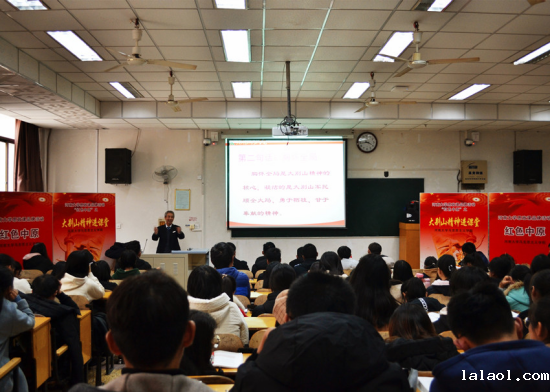 刘向阳以大别山重要的战略位置为切入点,生动讲述了大别山的革命历史及历史定位。他运用大量实例具体分析了大别山精神的内涵,强调大别山精神是中国共产党历史使命、根本宗旨、政治本色的集中反映,是马克思主义世界观、人生观、价值观的充分体现,是民族精神、革命精神和时代精神的有机统一。随后,刘向阳引用革命前辈的话语,号召同学们弘扬老一辈无产阶级革命家留下的宝贵精神财富和光荣传统。